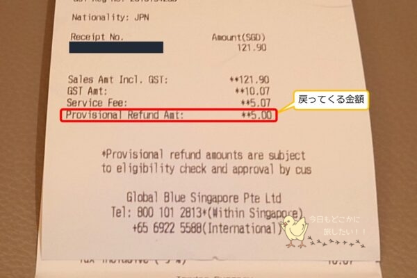 「10日以内に還付」と表示されていましたが、2日後には「GLOBAL TAX FREE PTE LTD SINGAPORE」から還付がありました。