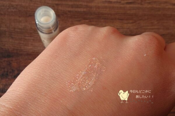 アイシャドウの色味は、黄色みがかった白ベース。ラメやパールがざくざく入っています。