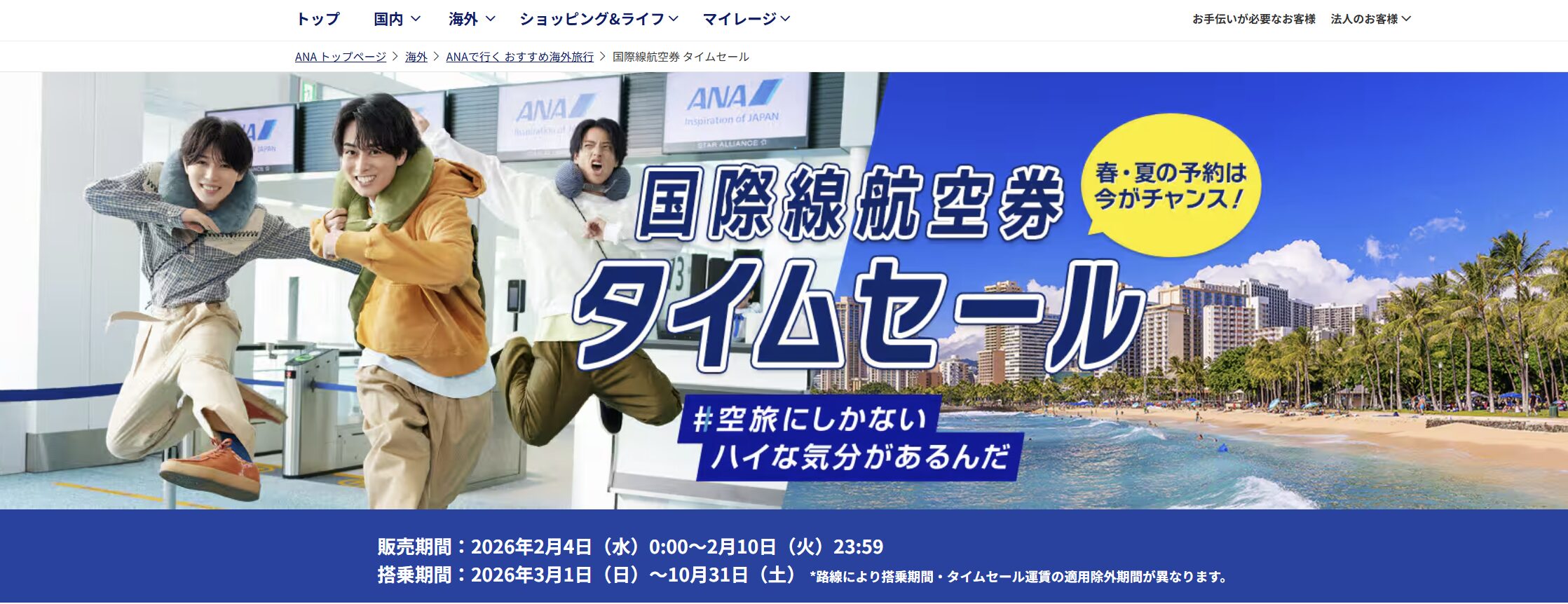 - 国際線チケット:2026年3月1日(日)~2026年10月31日(土)