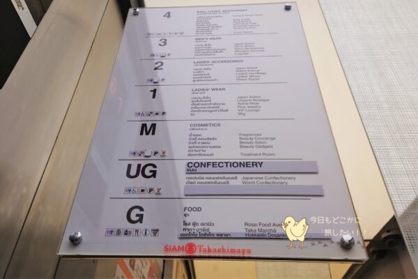 例えば、高島屋エリアだと、UG・1・3・4Fにありました
