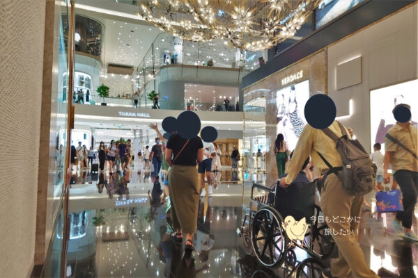 アイコンサイアム内の床は大体フラット、きれいな床材なので、車いす・ベビーカーでの移動で移動しやすいと思います。