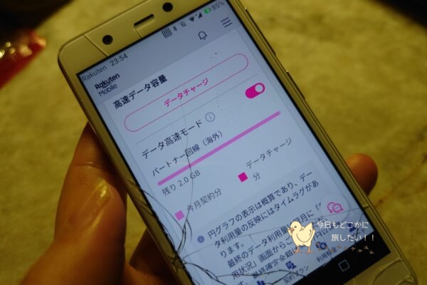 あと、一応楽天モバイルが海外でも2GBまで無料で使えるということで、電池の持ちがイマイチではあるもののrakuten miniを連れて行きました。