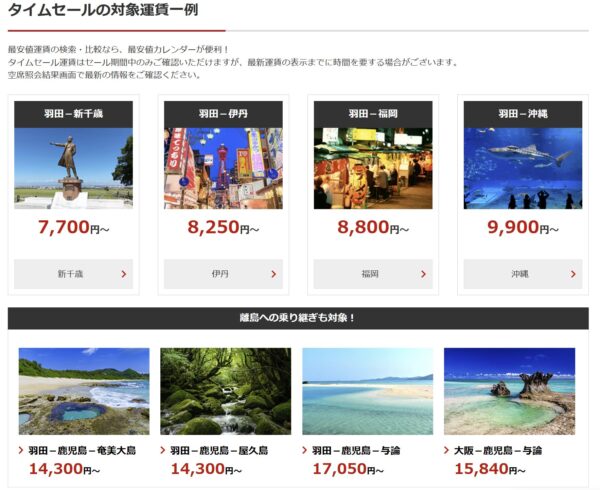 JALの国内航空券のタイムセールは、期間限定のスペシャルセール。