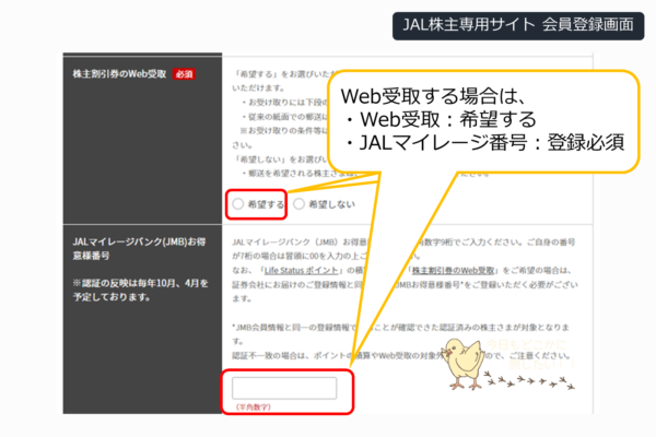 Web受取を希望しない場合は、JALマイレージ番号は登録は必須ではないです。