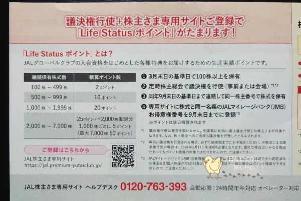 JALの株主向けのJAL Life Status Pointや株主専用サイトについてでした。