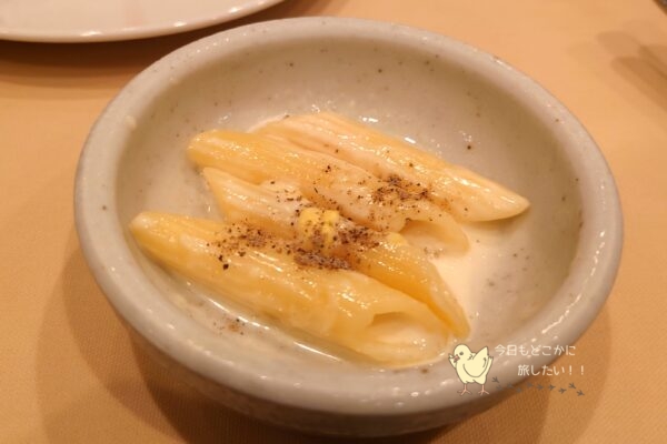 ショートパスタのペンネはあったのですが、主食というよりはおかず的な感じでした。