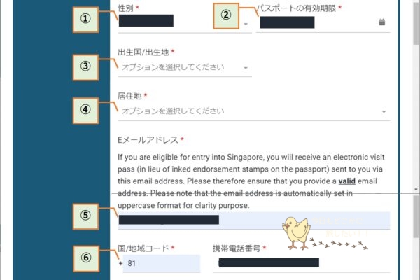 ⑥シンガポール出国日シンガポールを出国する日を入力