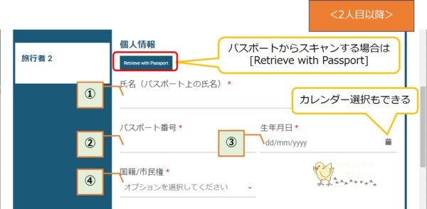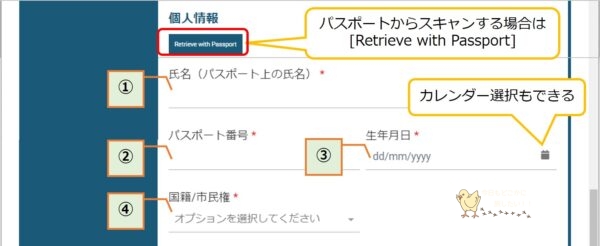 続いて、個人情報欄にパスポートの情報を入力します。
