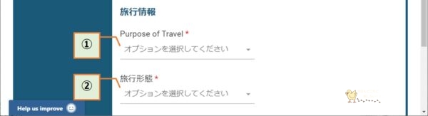 ②旅行形態(詳細)プルダウンから選択