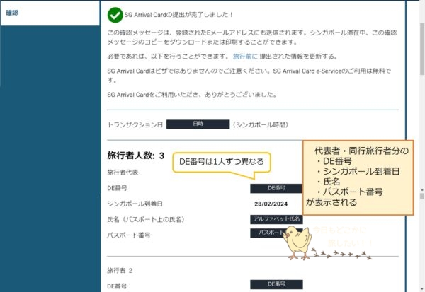 「SG Arrival Cardの提出が完了しました!」と表示されれば、入国申請完了です。