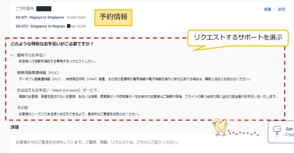 シンガポール航空に搭乗する際、車いすサポートをリクエストする方法についてでした。