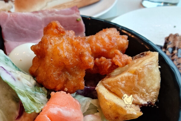 あまり韓国料理ぽいものは見かけなかったのですが、ビュッフェカウンターの唐揚げポジションにはヤンニョムチキン?らしきものがありました。
