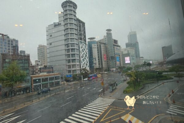 右手の方に、東大門デザインプラザの端っこが見えました。