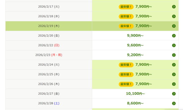 ほかの路線だと、連休期間は運賃設定なしだったり、価格が高めの設定になっていることがあるので、日程を少しずらすと、最安運賃設定になっている場合もあるので、人の移動が始まる前・落ち着いた後に日程をずらすと、安いチケットがゲットできると思います。
