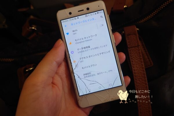 桃園空港について、楽天モバイルの電源を入れたところ、すぐに中華電信の電波を拾いました。