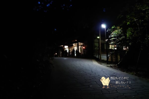 また、階段ルートもスロープルートも明かりが少なく、夜神楽の時間帯はかなり暗いので、要注意。