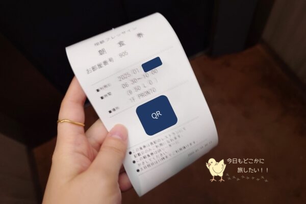 朝食には、チェックイン時にチェックイン機で発行された朝食券を持って行きます。