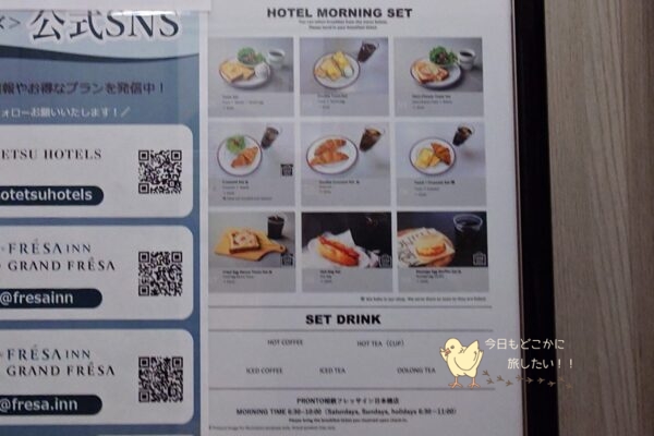 営業時間が短めなのと、宿泊者向けに朝食を提供している以外は通常のPRONTOと同じです。