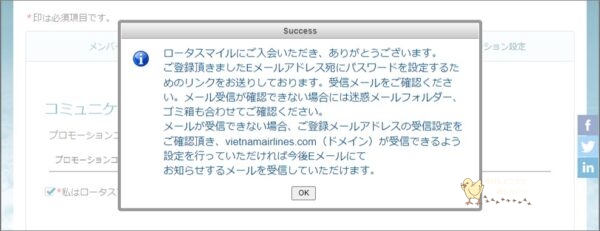 これで、マイレージ会員登録は終了ですが、実際にベトナム航空でチケット予約する場合は、追加でプロフィール情報まで済ませておくと便利です。